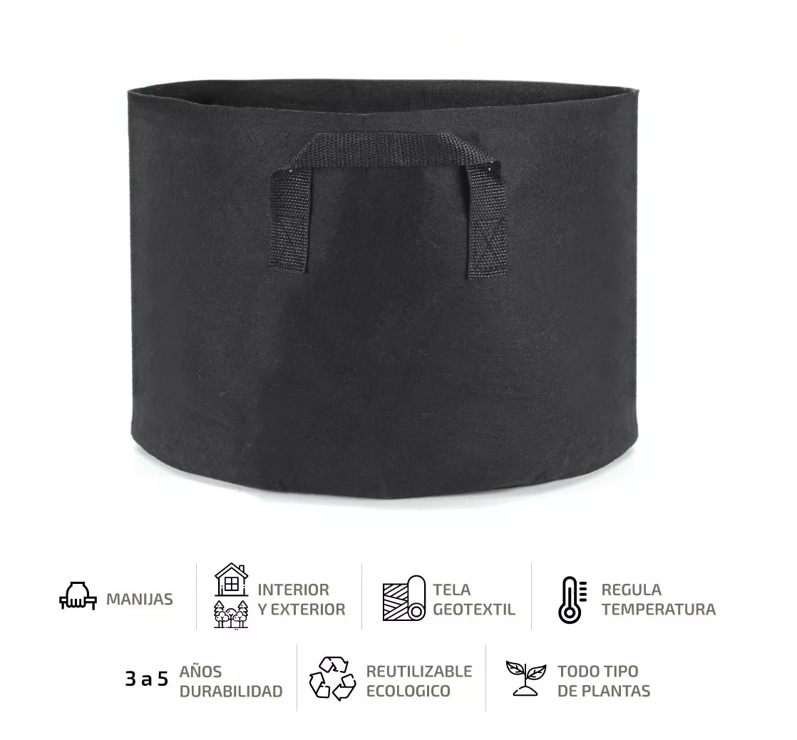 La maceta geotextil permite la aireación del sustrato, lo cual genera un ambiente saludable para desarrollar las raíces de manera distribuida, favoreciendo una mayor absorción de agua y nutrientes.
